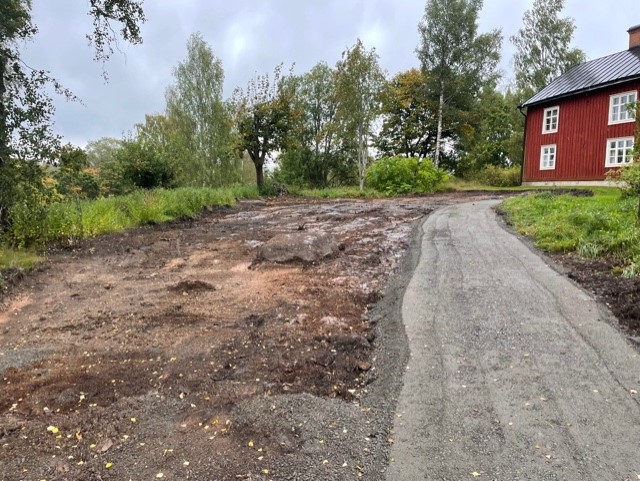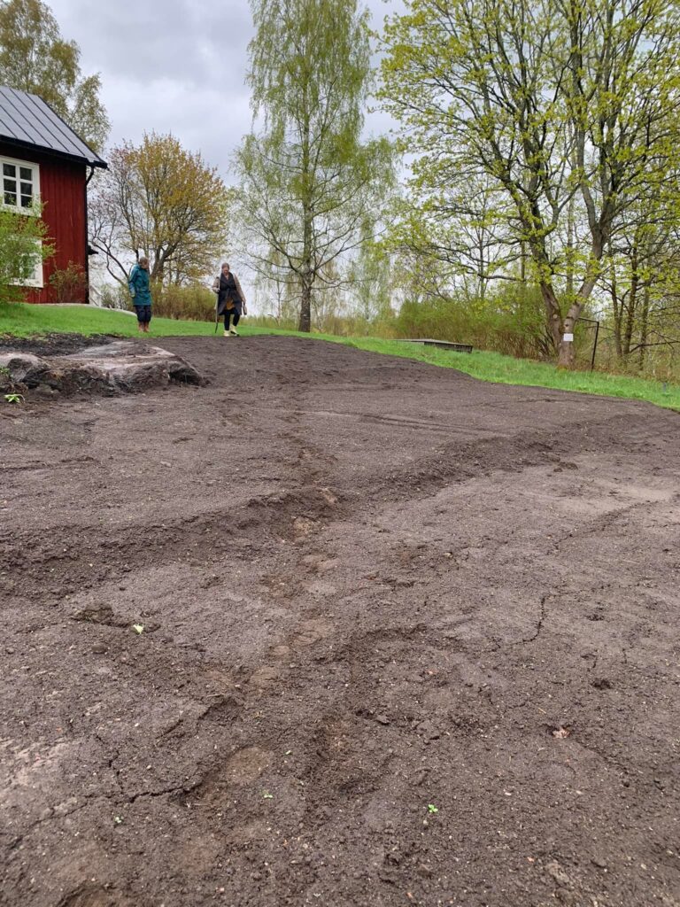 Nu har vi efter ett längre uppehåll under sommaren pga att tillgången på grävmaskinist från Karlskoga kommun (en del av finansieringen) varit ytterst begränsad – men nu är det gjort en hel del! Två ytor är nu grävda ytterligare, en på framsidan av Gråbo och en på baksidan. Dessa ska nu förberedas med ett lager lera för att jämna ut samt behålla fukt och sedan är det dags för matjorden som ska bli själva odlingsbäddarna. Troligen blir denna del gjord först framåt våren då det återigen är svårt med tillgången på anläggare (grävmaskin etc.) Ytan som vetter mot Korpkullsvägen är rensad från snöbär med hjälp av grävmaskin. Planen är att täcka med jord och så in ängsfrö för lång blomning under nästa sommar. Detta har hänt och är på gång: