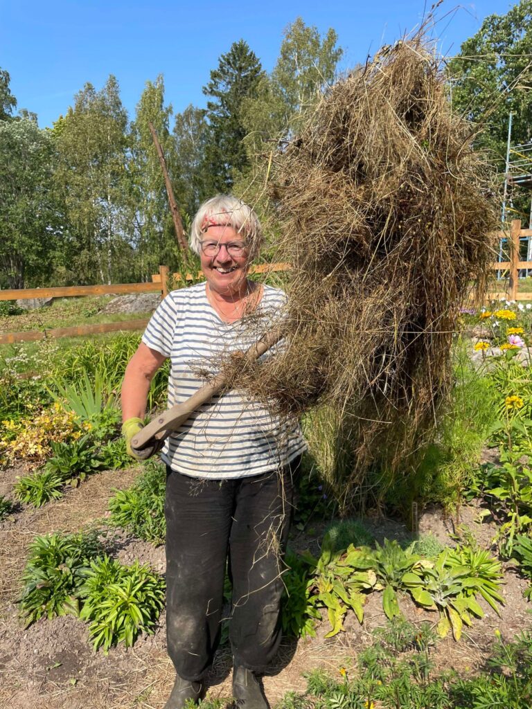 Vilken härlig sommar vi haft på Gråbo! Det blommar och växer mer än någonsin. Dessutom verkar staketet gjort nytta då det inte är mycket skador alls på växterna. Förra sommaren åts enormt mycket upp, speciellt bland mangold, lök, betor, morötter och kål. Vi har i odlargruppen börjat samla in fröer till nästa år, skördar godsaker och preparerar jorden inför nästa säsong. Gräs och växtdelar är prima jordförbättring och höjer mullhalten.